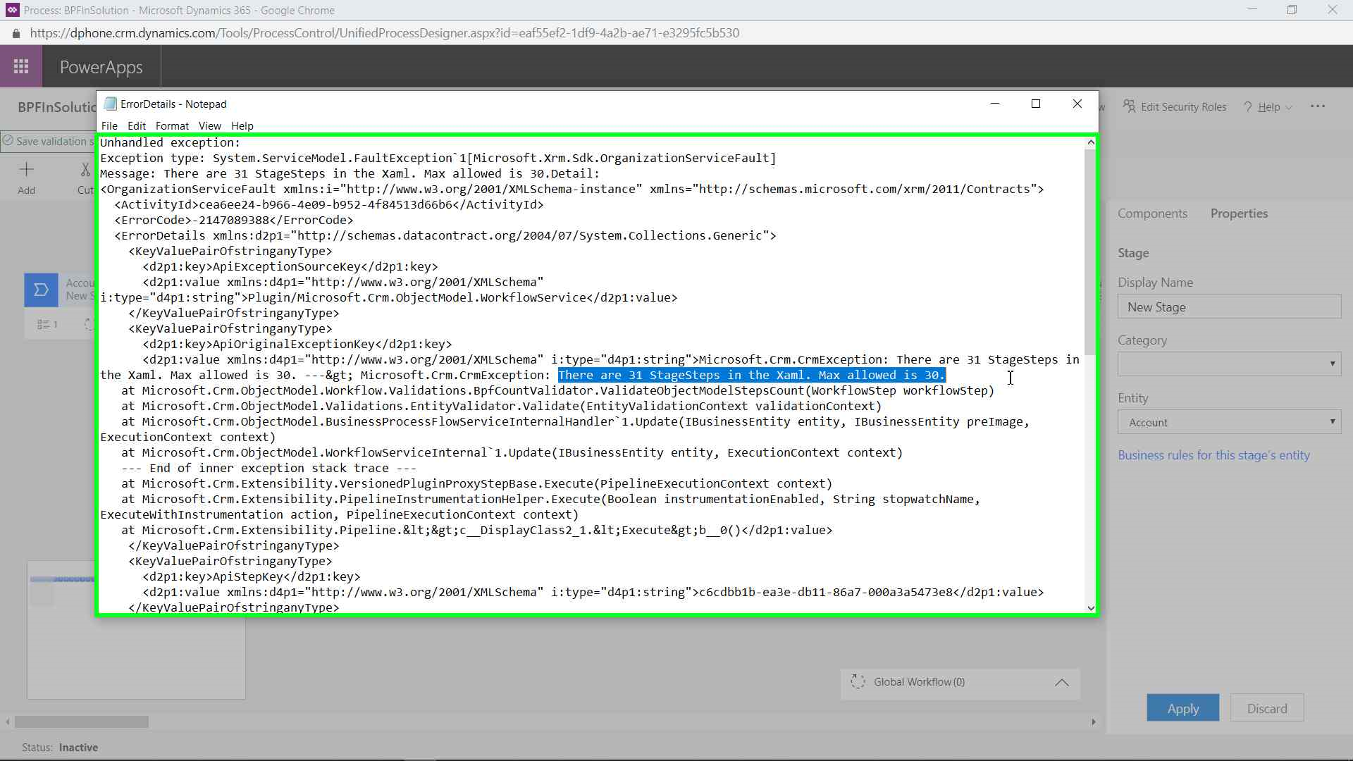 - You will get Error for more than 30 stage while Saving or validating the BPF using Save or validate option.
