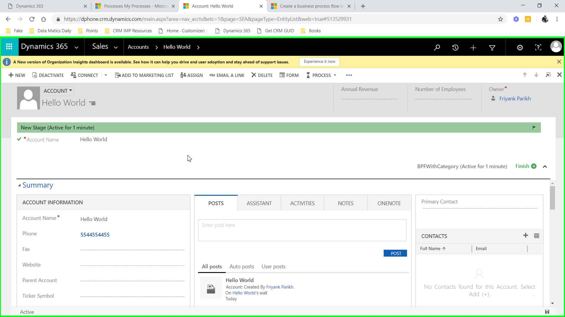 Now when we select some relationship and update BPF and again click next stage, you will again get fly-out but this time it show all the related records of contacts based on relationship provided.