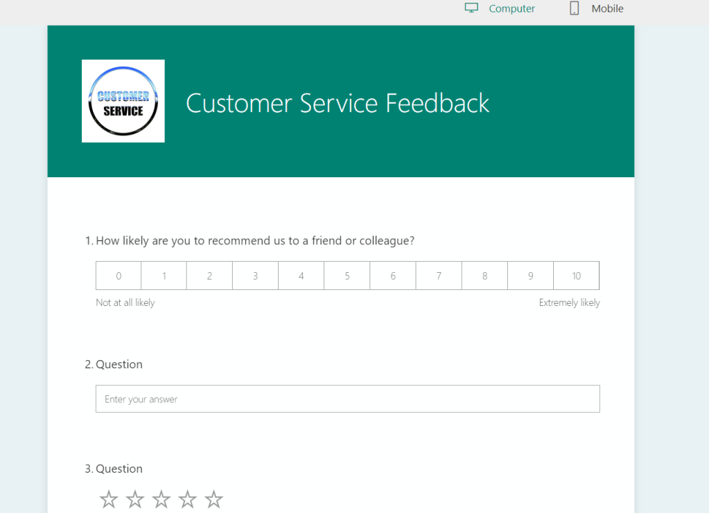 Required : Making the question as required, Normally on customer feedback form, Field are kept optional.