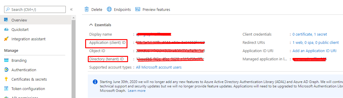 Go to Overview > Copy Client ID, Tenant ID save it in notepad.