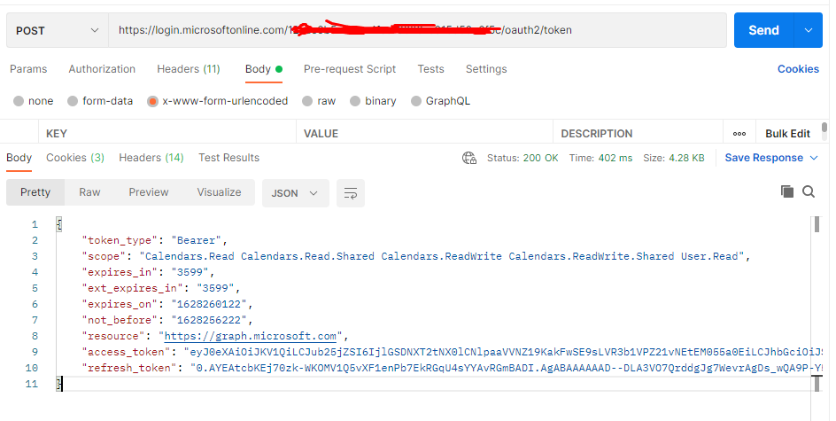 Now We have all we need to call Graph API from POSTMAN and get Token.