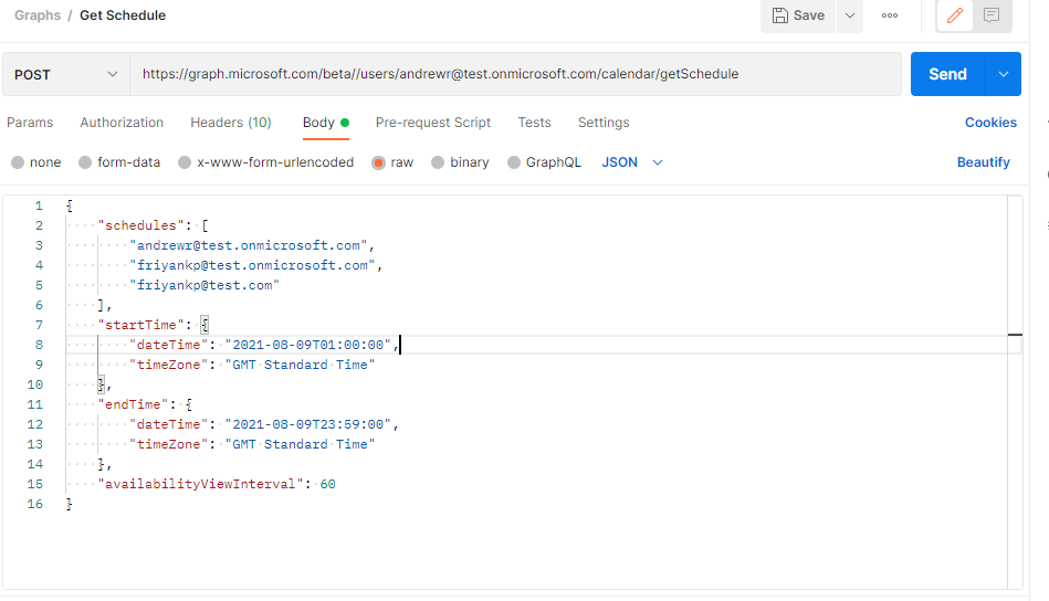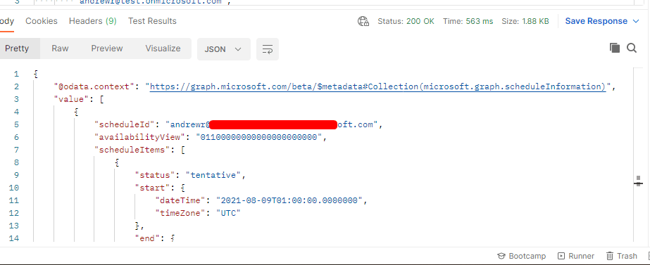 URL : https://graph.microsoft.com/beta//users/andrewr@test.onmicrosoft.com/calendar/getSchedule