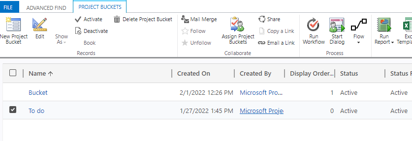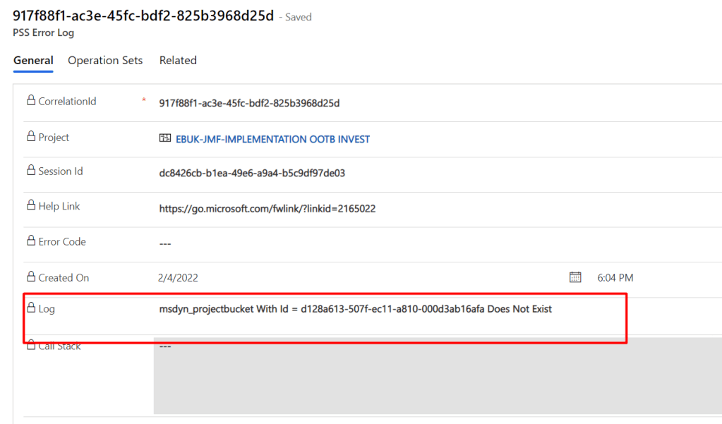 “msdyn_projectbucket With Id = d128a613-507f-ec11-a810-000d3ab16afa Does Not Exist”