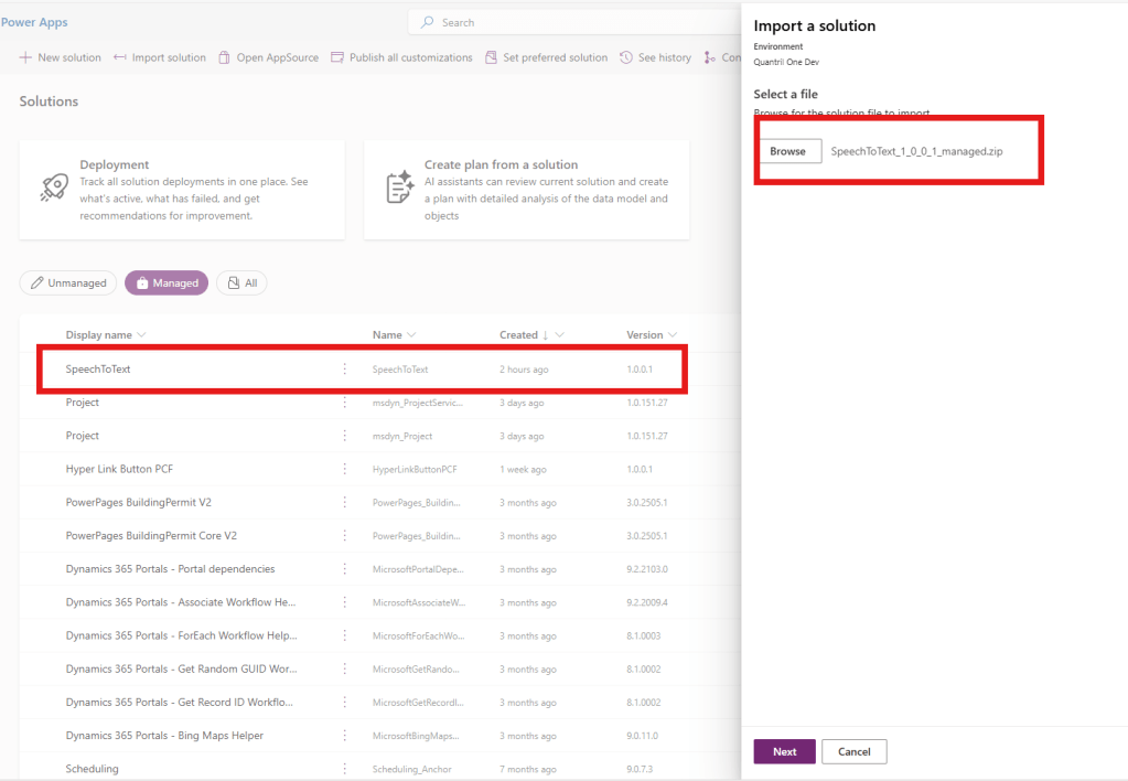 Import the managed solution into your Power Apps environment